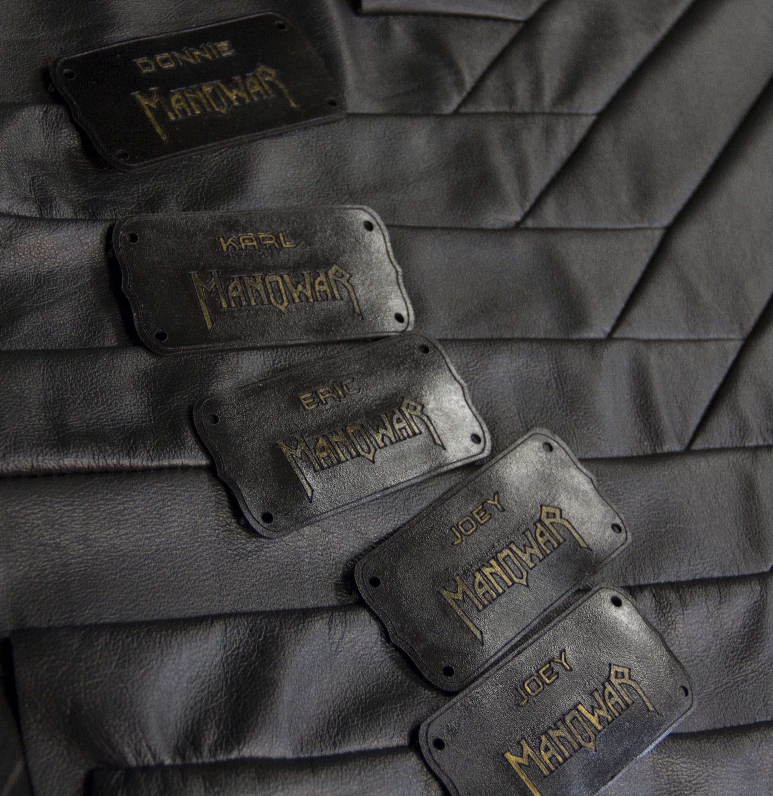 Joey from the EPIC heavy metal band Manowar required some leather vests and bracers to complete their stage performance wardrobe. The design features a hybrid of tooled designs for the chest and bracers and garment leather everywhere else. Each band mate had their own similar unique variation.
